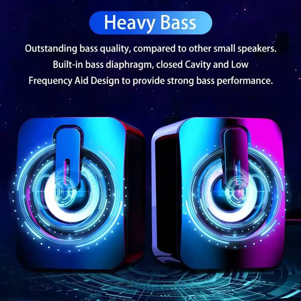 Computer Speakers with LED Lights – HIFI Stereo Sound Box & Microphone | USB Wired PC Speakers for Desktop Setup